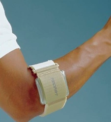 A golfer or a tennis elbow strap is a rehabilitative product often worn to help treat specific conditions, such as lateral epicondylitis injuries, as well as reduce pain in the elbow joint. An elbow strap is most often recommended for people who have lesions and inflamed soft tissues, tendinopathy and enthesopathy (fascia, tendons, ligaments) around the proximal surface of the forearm.