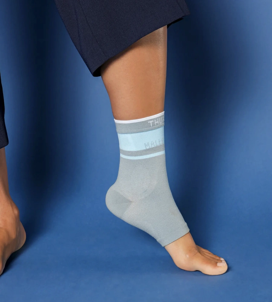 - Elastic compression fabric (15-20 mmHg/20.1-27 hPa) ensuring proprioception.Comfort zone over the malleoli.