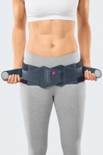 Open the belts and slip your hand into the orthosis. First pull the belt on the wrist through the buckle and close it. Then close both thumb belts crosswise. Please note: do not fasten the Velcro at the thumb too tightly. If you experience pressure pains loosen the straps. Consult your orthopaedic technician or doctor should pain continue.