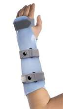 In case of wrist complaints, the Manu 3D Pollex prevents improper wrist movement and also stabilises the thumb. The support features a volar plastic splint, which limits flexion and extension. The splint for the wrist is a pre-shaped thermoplastic splint and the thumb is stabilized with a steel spring. Adjustable thumb grip. Offers support and loading for the wrist, CMC, and MCP joints of the thumb. Measure around wrist joint.